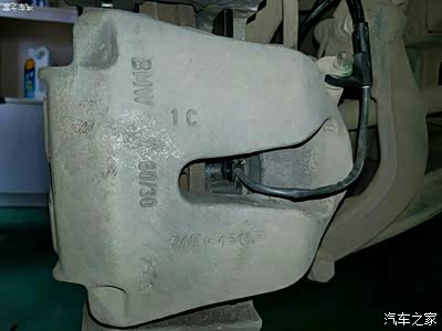 前面拆起来很快,一个轮子从拆下来到换上新片子,也就十五分钟不到的样子,宝马的质量这东西也扎实,不用担心会弄坏分泵什么的