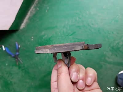 这个图可以看出,内侧的那片磨损情况比外侧那片严重,这也就更加证实了,分泵的作用力是作用在内侧那片上面,支架就是给卡钳活塞固定的,哈哈,勿喷我啊,谢谢![]()