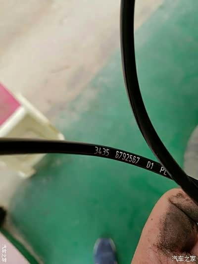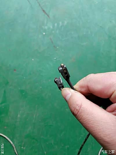 感应线,前后各一根,需要单独购买,我去修理厂的时候前部刹车片已经报警剩余只有600KM了,前部那个电容感应触点已经磨平了,如果5000的时候去换的话应该不用换感应线也没事,后轮就是这样,下面有图有真相