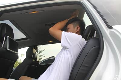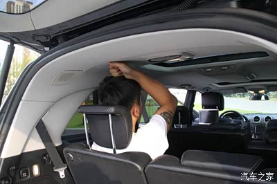 GL的第二排不具有前后调节空间,然而在这种环境下第三排的腿部依旧拥有着两指的腿部空间,要知道我们的模特绝对不属于小巧型。加上头顶的采光天窗以及头顶的空调出风口,GL的第三排绝对不输于一些主流MVP。