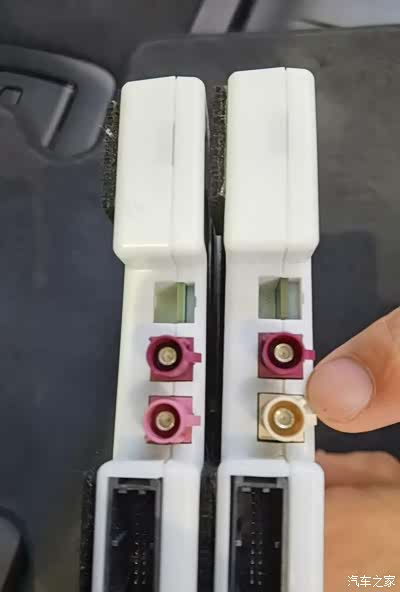 新模块的接口和原车的接口有一些不一样,功能是美国卫星电视信号接收天线接口,需要刀割一下,当然不接也行