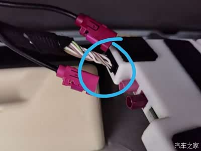 原车模块数据线接口的这个位置有一个锁扣,拆的时候要先解锁,不然拆不下来