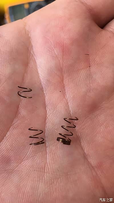 小心翼翼的拆开阀芯后抽出来,靠,掉出来几节断了的弹簧,果然是这个阀芯有问题,弹簧断了后就重叠在一起,导致弹簧压力变小和行程变短,不能有效的顶出阀芯,最终造成动作不到位。一个小小的弹簧就能让一台车无法动弹,如果去SSSS店,可能会被要求换总成,花费估计两万起。话回正题,问题是找到了,但是这个弹簧怎么配,春节到处都买不到,淘宝也停了,这可怎么办?只有先想办法应应急,断成三节的弹簧有两节较长,我把这两节弹簧拉长,然后背靠背合在一起,保持整体长度和原弹簧长度差不多,虽然时间长了弹簧会压缩,造成行程不够,但是应急应该是没问题,待年后再想办法买一个换了。重新装车、试车,故障消失,直到最近我买来新弹簧换了,一直没有出问题。总共花费人民币1元钱(人工不算)![]()