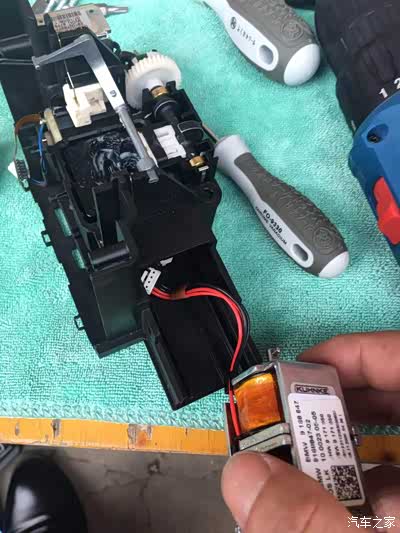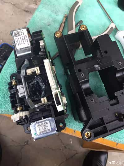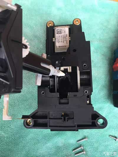 要想拆开解锁机构,就必须把电子档总成全部拆散,拆散后发现挡块滑道内部的润滑剂(白色的,可能是凡士林或者没见过的高级润滑油)已经有点干了,看来故障就是这里,于是开始清洁滑道,从旁边没有干的润滑剂里挑了一点重新润滑滑道(机构非常小,指甲盖差不多,用油量很少),然后安装起来试车,完美,车子马上正常。开出去试了一圈,没有任何问题。心里那个美滋滋啊,满满的成就感,不由回想当年几千万的四轴联动大型镗铣数控加工中心我还不是想拆就拆,区区宝马电子挡总成,完全不在话下。。。。然而,我草率了![]()