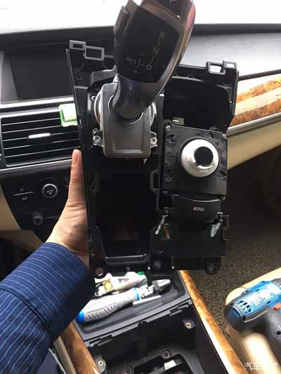2021年2月的春节期间,早上准备出门,突然发现档杆挂倒挡的时候往前推不动,前进挡正常,P挡正常,反复尝试按压档杆侧面的解锁键故障依旧,由于是春节期间,车辆前后都有障碍物,车子无法用拖车拖走,也倒不出去,于是打电话给日常维修保养的大师打电话,大师回了老家,也是望尘莫及,没办法,只好上网查可能的故障原因,但是网上关于X5的维修少之又少,几乎全是改装类的帖子。可见此类车主都是土豪,维修从来不考虑。。。。万般无奈之下,只好仗着自己曾经有过十年数控设备维修的底子试着修一下,找出工具说干就干![]()