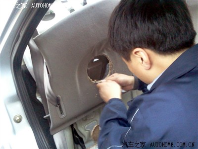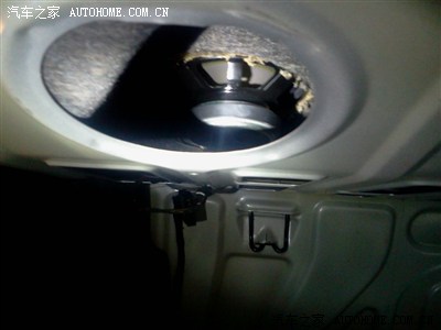 19、音响在原车预留的铁皮窟窿里侧,也就是靠近后座的一方;