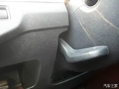 方向盘左侧下方调整方向盘高度的把手,调的时候向下掰下就可以调节方向盘了,调完后向上再掰回去。