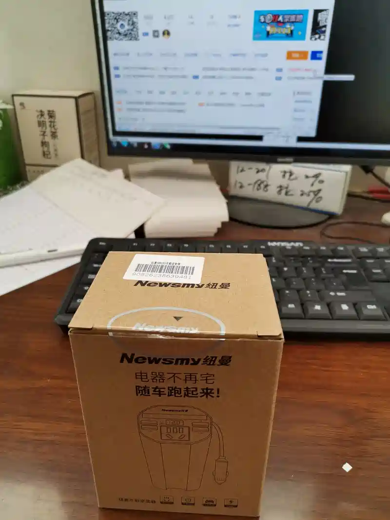 这个车载纽曼车载逆变器是上一期的雨露均沾奖品。这个可以接电源150W,还不错,手机,笔记本,一些充电器应该可以用。