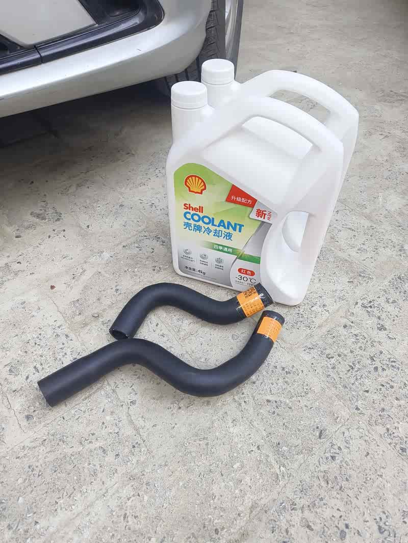 防冻液快四年了,上下水管接口有点老化开裂,这次一起换了。说说更换防冻液过程,在汽修店换的。