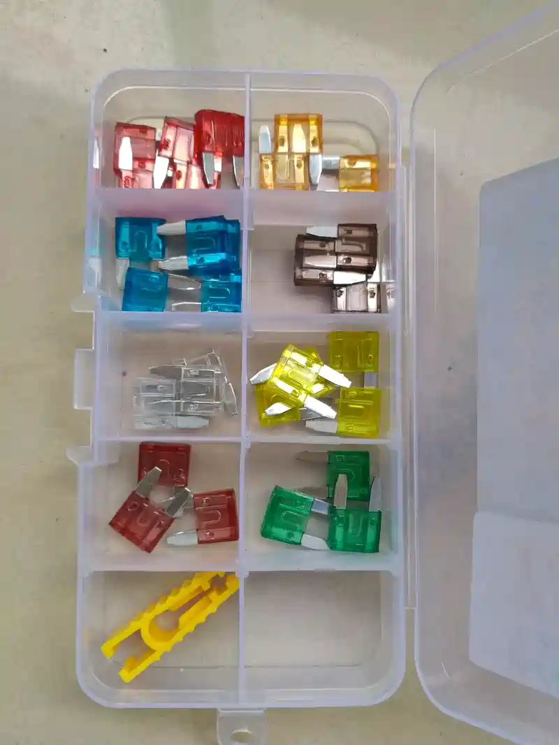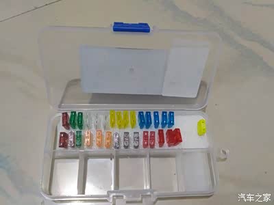 网上购买的套装小号30片,5A一40A各3~5片,40A赛欧3用不上,其它放车上备用,包装太简陋,自己动手放入泡沬好多了,放在车上不会有异响了