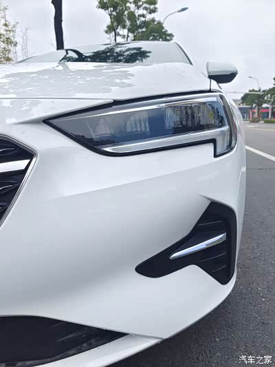 首先说我最喜欢这个车外观的一部分就是这个大灯,有型,英俊,然后整个熏黑的中网格栅看起来运动气息很浓厚,前面的大嘴巴看起来很有气势,大灯是LED灯珠,晚上也很亮。整个侧身看起来很修长。很厉害。