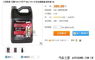 今年3月在汽车之家团的托库SR-1 街道版 5w30 4L+1L,买了两组,准备以后保养用的。结果现在囤的机油越来越多 ,现在用的是灰壳5w40,还有一瓶灰壳没用完。除了灰壳、托库,主要是囤了17瓶的1L装金美孚在等着用。现在想想用了40 的油就很难用回30的了,所以还是决定忍痛把托库出掉。