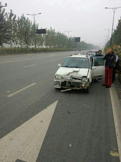没错,就是它干的,这辆奥拓。奶奶的就是那个男的!!那个男的媳妇干的,双实线掉头!!你还笑,你还笑。