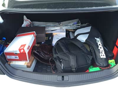 后尾箱,很乱,没事就运动,所以经常就放些运动鞋和拍子!