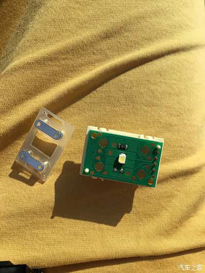 下面说说防盗,我想过可以借用环境光照传感器,就是我们仪表台正中间那个,锁车后每隔两秒会闪一次的那个灯,只有用钥匙遥控解锁后才不亮,这个信号用来作为模块的防盗非常好,可惜我用不了,我加装了无钥匙进入就已经解除了原车防盗,这个灯已经是常灭状态了,这里我还是好奇地把它拆下来作了测试