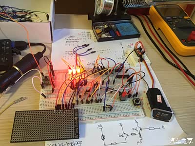 大体过程是这样的:电路设计--拼装简易测试电路--单片机编程--上车测试--修改方案--上车测试--......--测试成功--设计电路板--焊接电路板--上车测试--修改电路板--上车测试--......--制作外壳--安装。