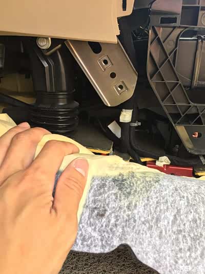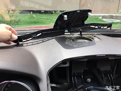 从前风挡吹风口开始拆,很紧,是卡扣的,使劲来吧