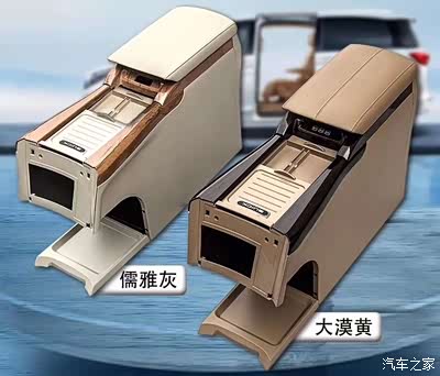 常规的3个款式,两种颜色大漠米 儒雅灰,两个桃木风格搭配出来3种版本,如果对威霆V级有研究的车友会发现,从这个角度看这个扶手箱有几分眼熟,可以肯定这个扶手箱的设计灵感很大一部分来自V级的扶手箱。