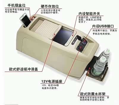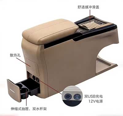 带冰箱扶手箱最新的进化样式 这款扶手箱整体美感还是不错的,主要是模具件,少部分手工件。支架安装,点烟器取电