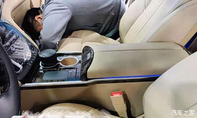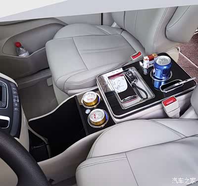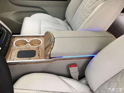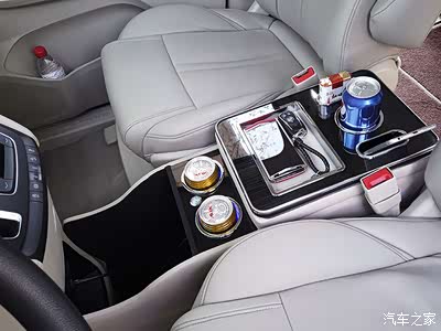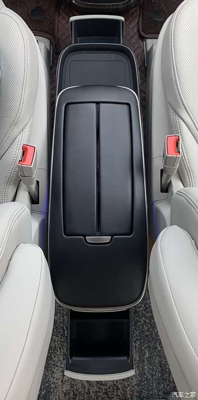 对开设计,冰箱及冰箱开关是在扶手箱内侧,这一点也像极了V级的扶手箱