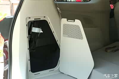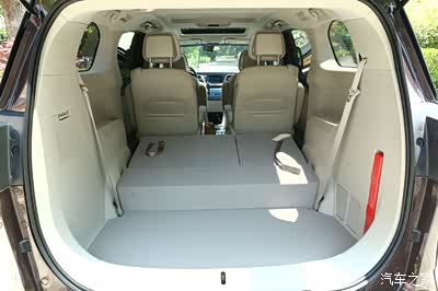不用7座的时候,第三排座椅能够放倒,虽然不像胖头鱼一样能看到座椅腿,但是地台依然不是全平。好处是后部的纵向空间更大,缺点是放倒第三排后因为不平人不能躺进去。后备箱左面饰板是可以扣开的,位置和胖头鱼正好掉了个个。拿掉饰板里面很空,能放一些私房钱,已婚男人都懂我正在说什么。
