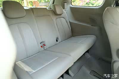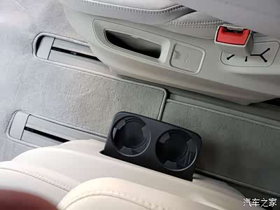 第二排座椅支持前后滑移,这台车的主要卖点也就是第二排的乘坐舒适性。第二排座椅和第一排座椅在造型上是一样的,坐起来也是一样的感觉。唯二的区别就是安全带是做在座椅上的,另外就是座椅旁边有杯架和手机槽。