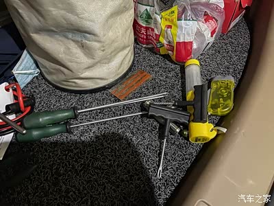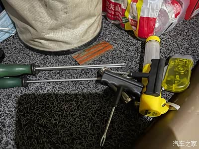自己用辣条先将就着用吧。八一建军节,我们好歹是退伍军人。拿出我的工具包。我的打气泵,我的千斤顶,我的自备工具包。