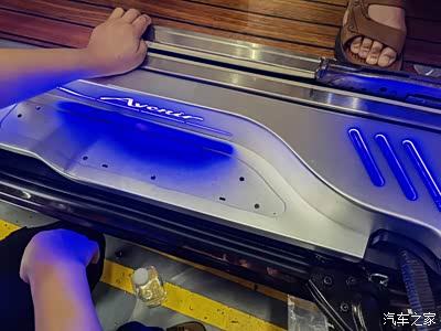 测试这个铝合金的迎宾踏板,他的灯光是接原车迎宾踏板接线的,不过说实话,这个颜色有点偏蓝,稍微有点土味,如果能是艾维亚原车的那种淡淡的白色就更好了。但这个我也不想再二次更换了。