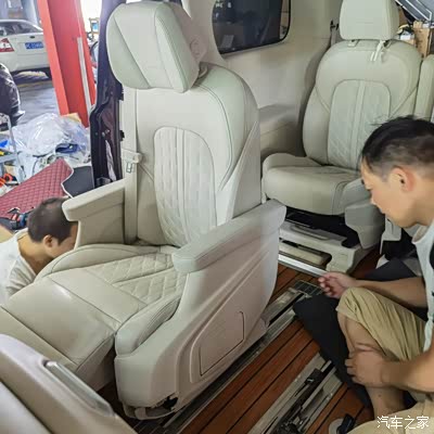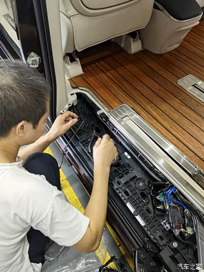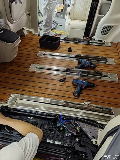 第2排座椅齐刷刷的往后仰,为了腾空间,给底部与原车插头接线的施工空间。
