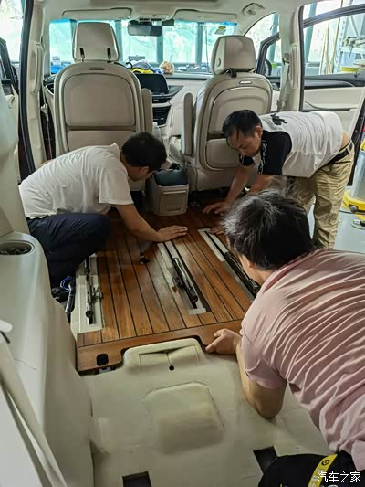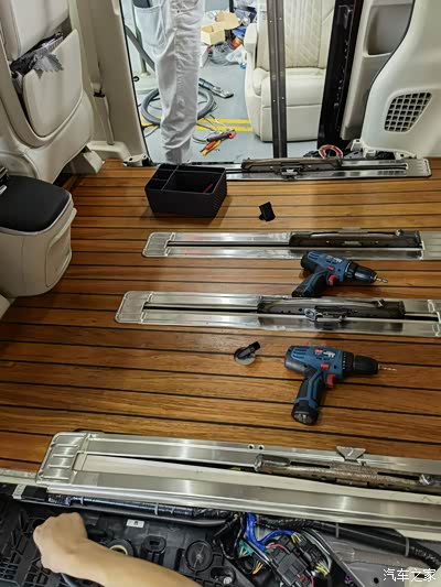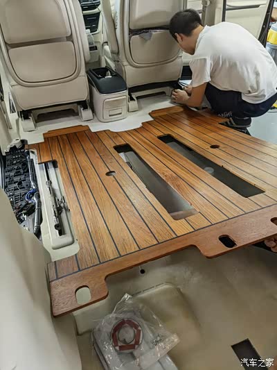 但这车在4S店,被强装过一套软包脚垫,这东西越看越不喜欢。而且拆除的话,还需要把车内6个座椅都拆掉,思前想后,那既然要拆座椅,干脆就来一套木地板吧