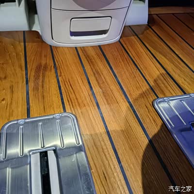 木地板是实木材质,底部加了一层薄薄的金属板做加强,背后还有钩面材质,能与原车地毯更好固定。