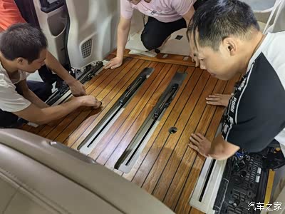 我选择的是保留原车隔音海绵的方案,木地板是前后两块,需要分别安装。