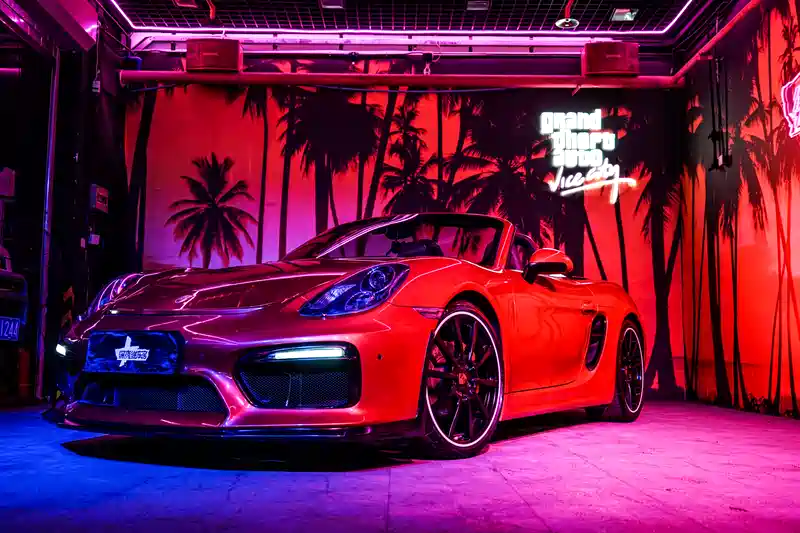 自己的小宝,玩儿了快小一年了,七七八八改的差不多了,介于国内并不引进981Spyder,我想大多数人都是用手头的boxster去改。车漆问4s店的时候,告诉我是当时特殊车漆,系统里显示叫什么,紫红色···反正金属漆,洗好了很有质感··同样··脏的时候也很显旧··图是网红洗车店给拍的,技术不错。