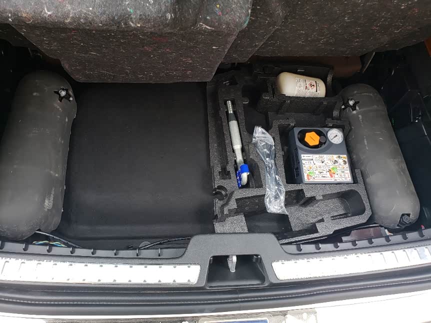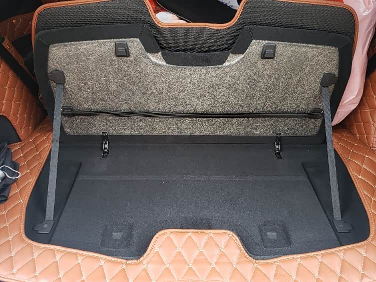 后备箱功能区,第三张T8特有的,没有备胎,这个位置都放了电池了