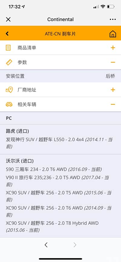 到4s店保养,还属于保养赠送期内,维修人员告诉我后刹车片不行了需要更换。处于耗材须找到可靠且价格便宜的原则,当时拒绝了。回来后,查资料显示xc90原装刹车片是有著名的ate代工。最后联系淘宝ate旗舰店询问,说是进口的没有现货,可以订。等了半个月收到。工时费50,一起400。这也算良心价了。顺便提醒下,xc90带电子驻车,需要电脑释放刹车系统才能取下。