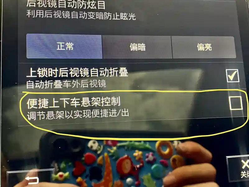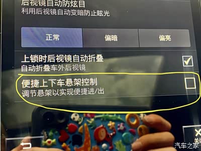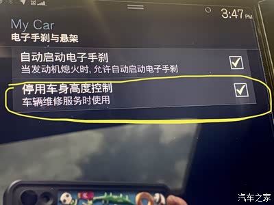 第一步:进入My Car,后视镜与便捷功能,取消勾选便捷上下车悬架控制,然后进入电子手刹与悬架,勾选停用车身高度控制,要不然用千斤顶时容易爆空悬,没有选装空气悬架的无视这步