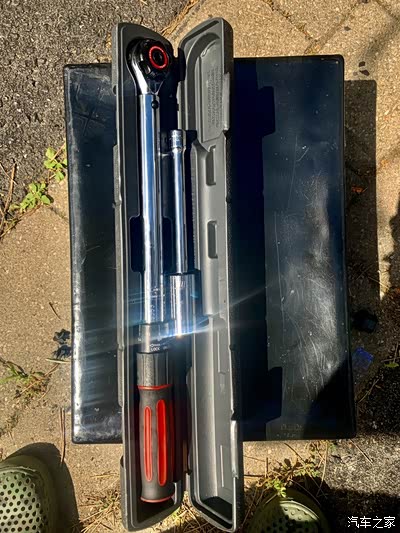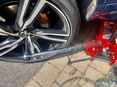 然后用定力矩扳手,设置到140牛米,用米字形手法拧紧螺丝,注意搬车轮时不要碰到卡钳,要不然就蹭掉色了