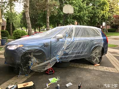 最好是用这种裹家具的塑料布把悬挂和车身都裹起来,以防喷到悬挂和车漆上