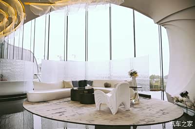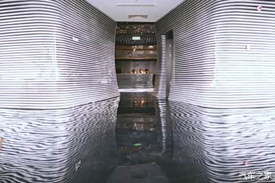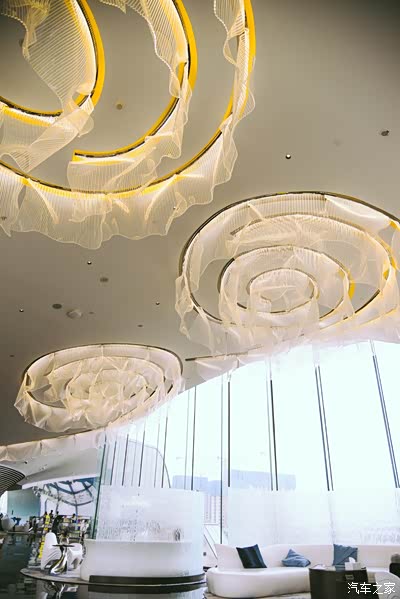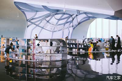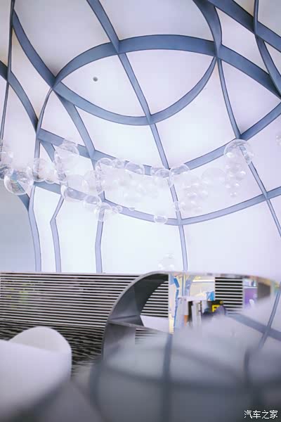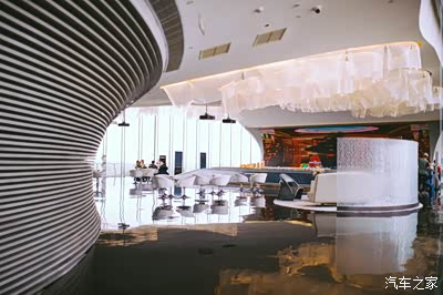 电梯直达三层,和外观的设计语言相同,内部也充满了“海浪”味道,并大量运用海、星空和水的元素。