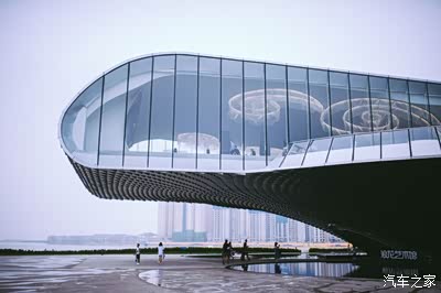 金属感的外墙在阳光和水面的衬托下,很有波光粼粼的画面感,浪漫唯美,像是一朵绽放的浪花。