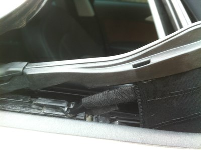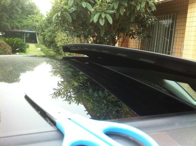 4、将天窗开至最大,把这里用胶布卷上,两边都卷,不要太多,太多容易导致天窗关不上,此处异响声音很微弱,如果不是完美主义者,这步可忽略。