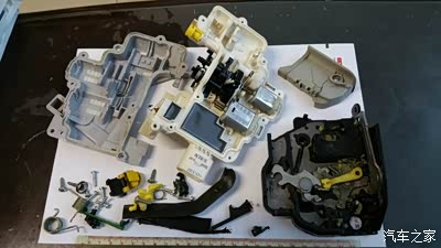 破坏性拆开内容真不少。猜想有个马达是开门用的,有个是关门用的。那个封闭区里应该是电路板。尤其是那些边沿的黑色胶皮,紧密地与金属体结合在一起,就像从金属里长出来的一样牢固,是有相当工艺水平的。