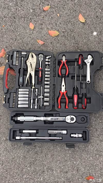 随车工具,后备箱常备,还有搭火线拖车钢缆电动气泵。