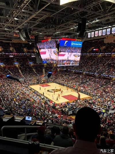 詹皇的现场绝对燃爆了,又是骑士主场,球迷的声浪感觉都快把速贷中心给掀翻了,比CBA的气氛好太多!(可惜用手机拍不出好的照片)