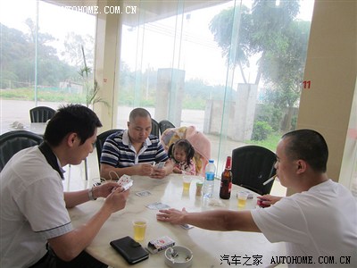 我们来早了,其它车友还未到,百无聊赖之际,明月和杰仔的朋友们玩起了纸牌。