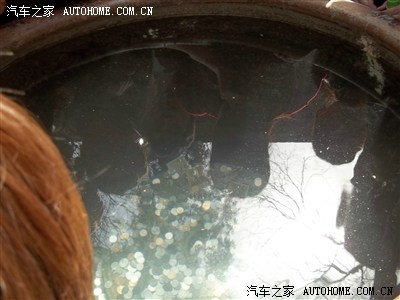 原来是往缸里扔钱呢,扔到中间的小洞者为幸运者