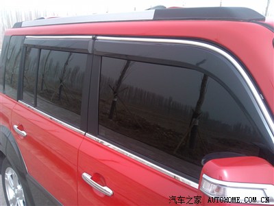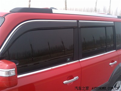 雨挡是4S送的,同时送了发动机下护板,就这2样,抠门。地胶是我在车爵士铺的,专车专用,500大米。玻璃膜也是贴的车爵士,黑黑的,效果不错,1500大米。车门亮条是在神网买的,提升档次用的,嘎嘎。
