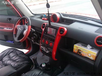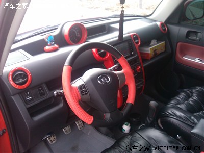 再看内饰吧。。。借鉴论坛里大师级人物的改装方案,内饰原银色部分喷成了亮亮的红色,看起来有点小风骚啊,没结婚的话,就是辆正宗的泡妞车,嘎嘎。。。细节部分下面有介绍。