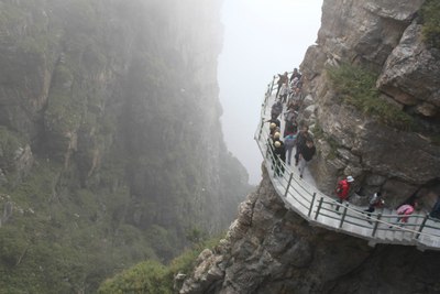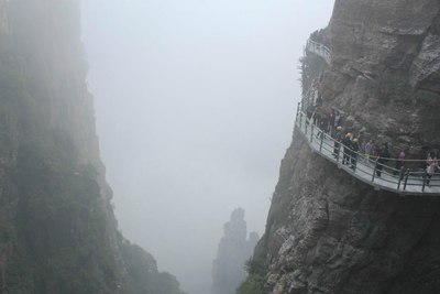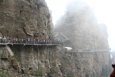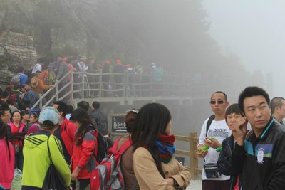 我们到这雾气很大了,根本也照不清底下,晴天的时候应该效果更好,估计很多很多人会溜着山边走。