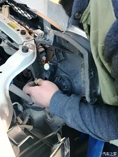 重点来了。左边是大灯左右调节杆,右边是高低调节杆,已分离。提醒调灯的友们,大灯调节得对墙一点点调,调快了就像我这样,除了破灯,别无它法。叫师傅从新给我对上了